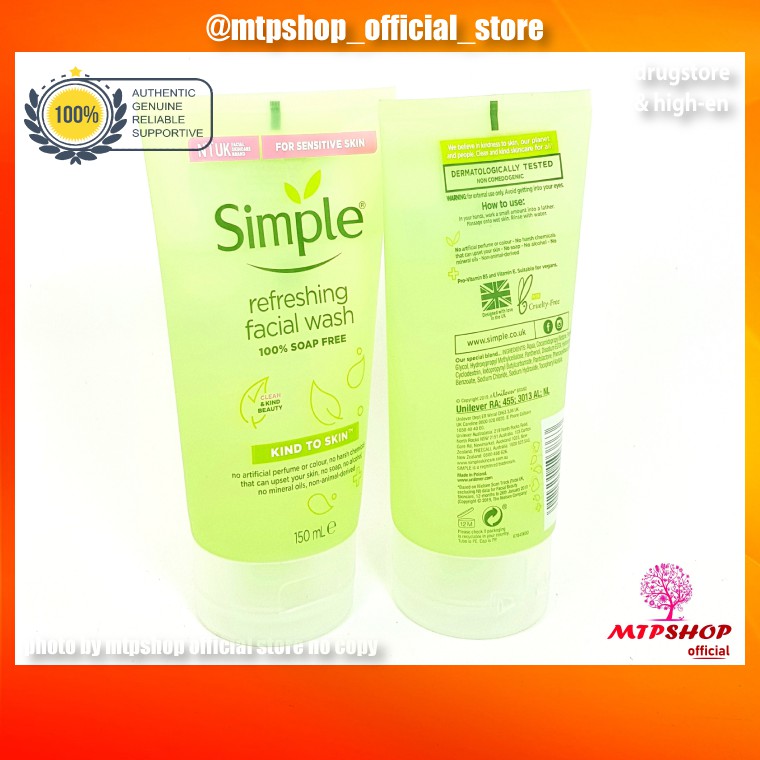 Sữa rửa mặt simple gel kind to skin bill 4 date 4 năm 150ml, Sữa rữa mặt chính hãng